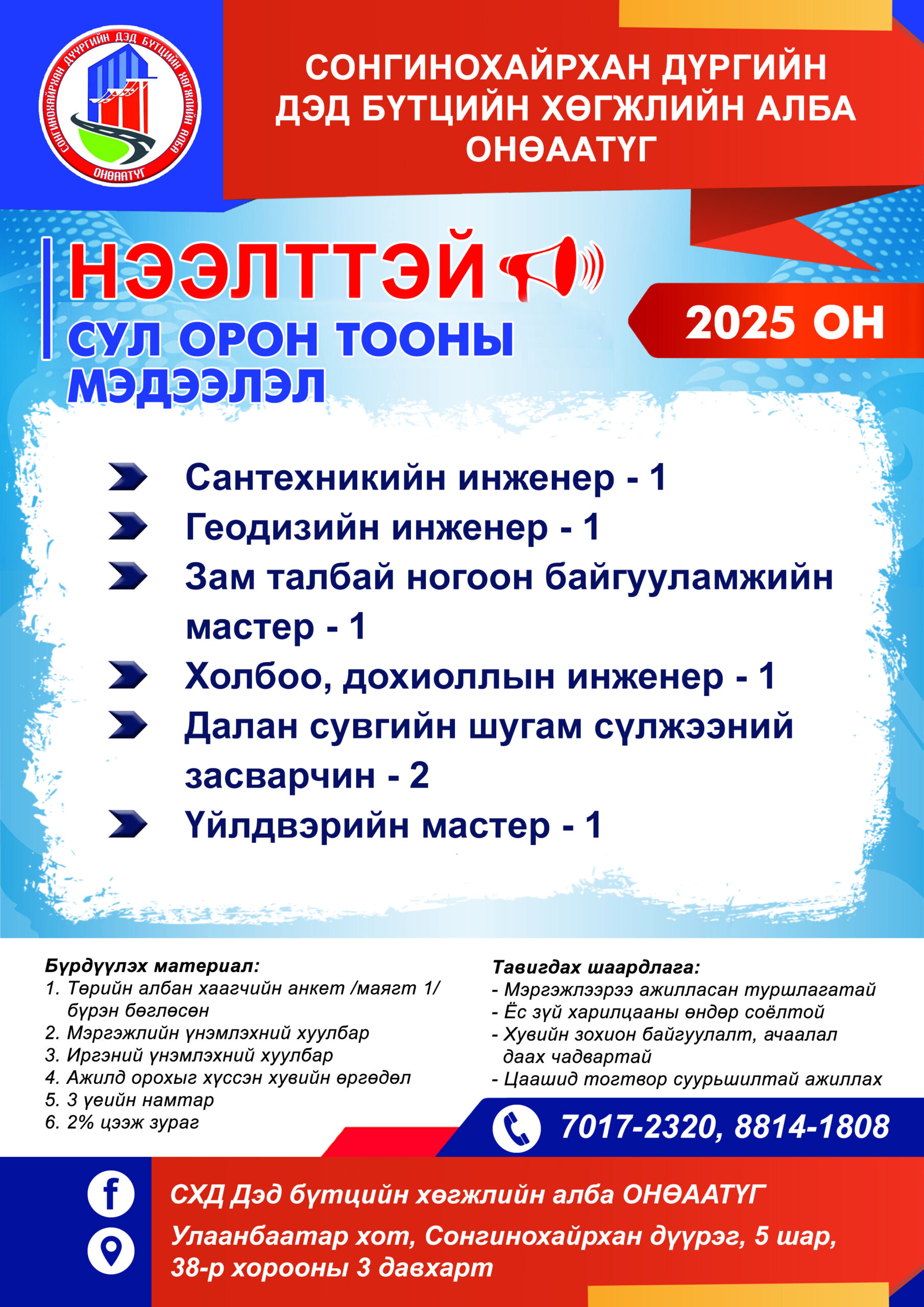 Нээлттэй ажлын байрны зар