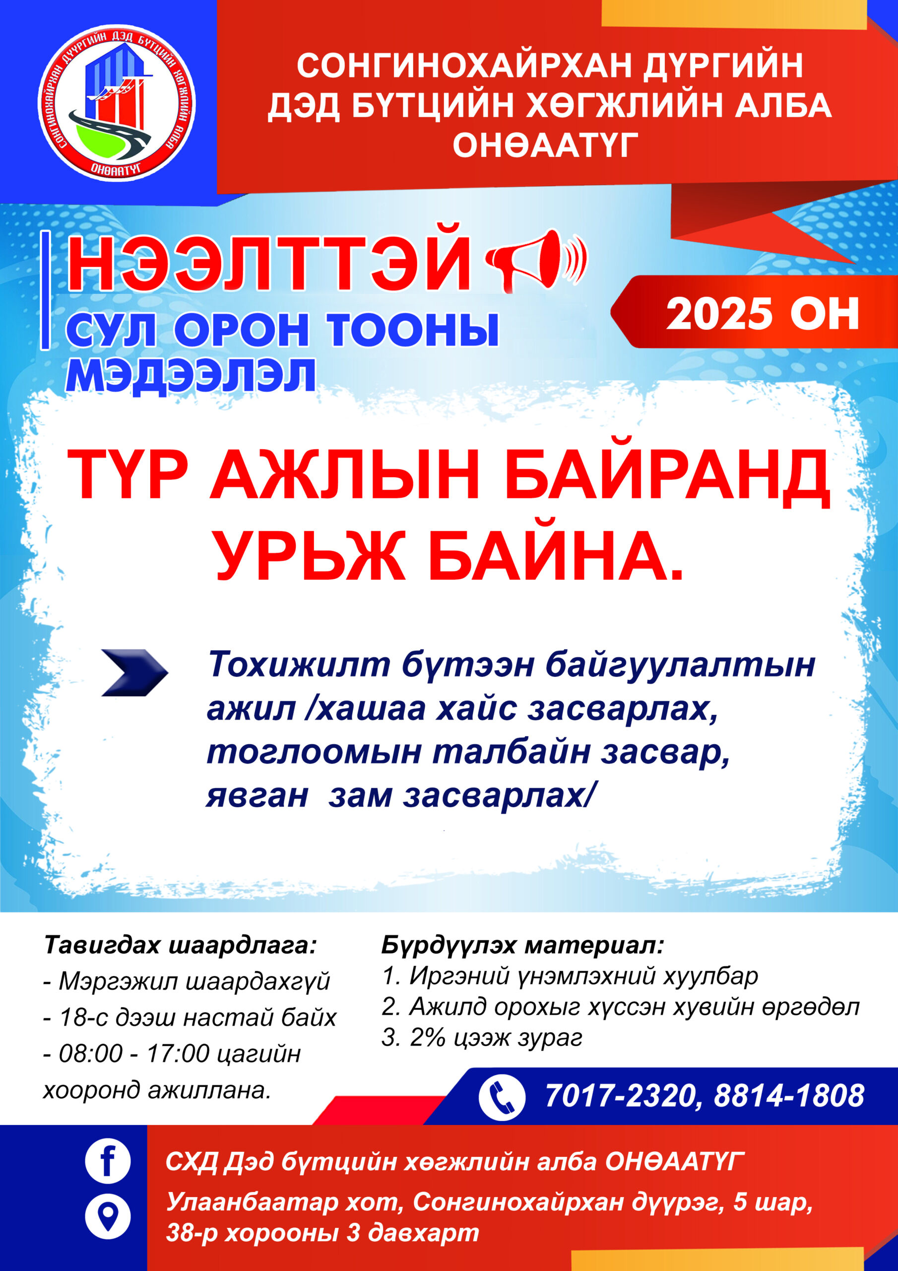 Нээлттэй ажлын байрны зар