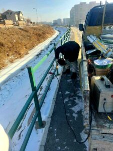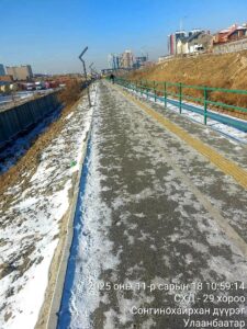 Дүүргийн 29-р хорооны нутаг дэвсгэрт явган болон дугуйн замын төмөр хашлага, хаалтын эвдэрсэн хэсгийг нөхөж гагнах ажил хийгдэж байна.