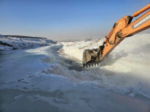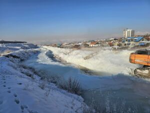 Дүүргийн 7 дугаар хорооны нутаг дэвсгэрт халиа дошин үүссэн хэсэгт шуудуу татах мөсөн далан босгох ажлыг хийж гүйцэтгэж байна 01/04/2026